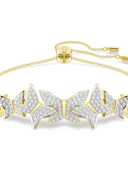 PULSERA SWAROVSKI IDYLLIA, MARIPOSA, BLANCA, BAÑO TONO ORO