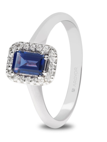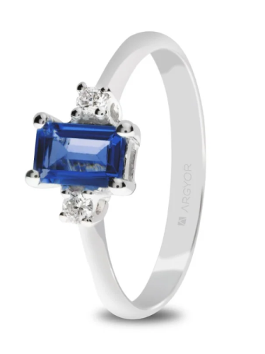 28 BRILLANTE 0.16 H SI11 ZAFIRO PRINCESS COMPROMISO ORO BLANCO ANILLO