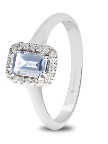 20 ROUND 0.13 H SI11 AGUAMARINA RADIANT COMPROMISO ORO BLANCO ANILLO