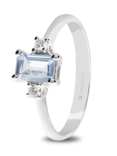 2 BRILLANTES 0.07QT H SI AGUAMARINA BAGUETTE ANILLO ORO BLANCO COMPROMISO