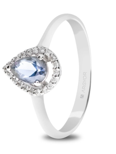 20 ROUND H SI11 AGUAMARINA PEAR COMPROMISO ORO BLANCO ANILLO