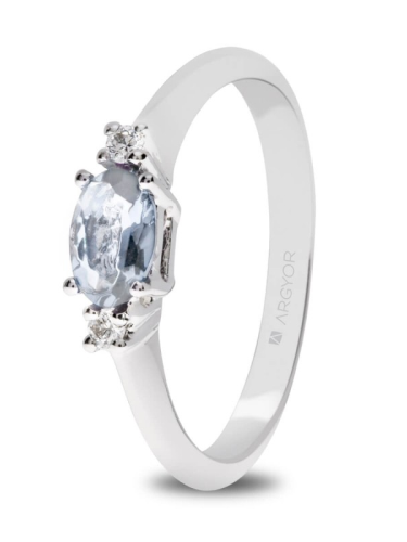 2 ROUND H SI11 AGUAMARINA OVAL COMPROMISO ORO BLANCO ANILLO