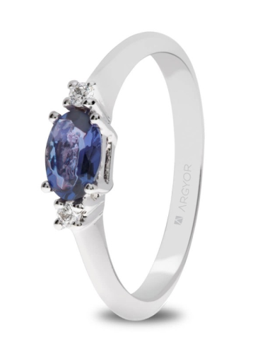 2 ROUND H SI11 TANZANITA OVAL COMPROMISO ORO BLANCO ANILLO