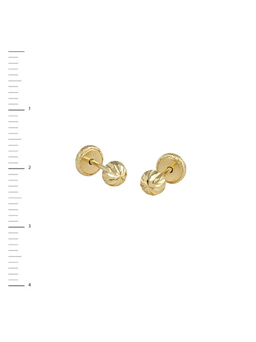PENDIENTES ORO AMARILLO CIERRE TUERCA – MEDIA BOLA 4MM TALLADO