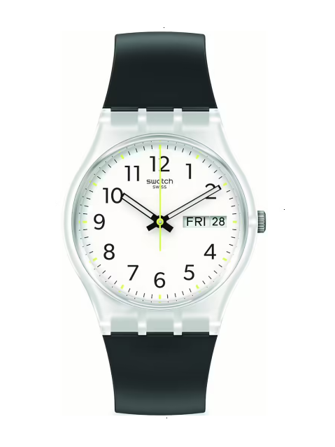 SWATCH RINSE RE4PEAT BLACK CUARZO 34MM BIOLOGICO BLANCA