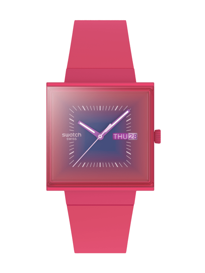 SWATCH SQUARELY BERRY CUARZO 41.80MM BIOCERAMICA ROSA