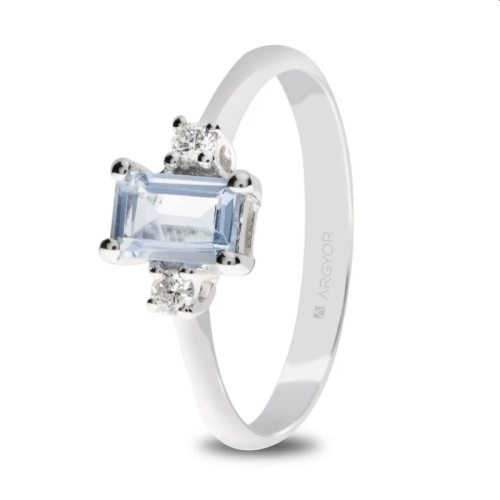 2 BRILLANTES 0.07QT H SI AGUAMARINA BAGUETTE ANILLO ORO BLANCO COMPROMISO