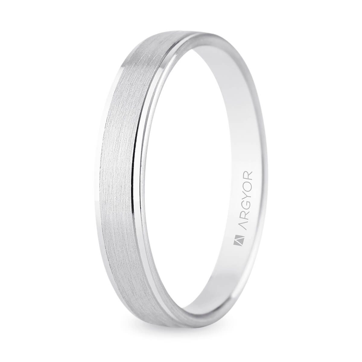 Anillo de boda de oro blanco con un doble acabado satinado en su banda central y brillo en las laterales.