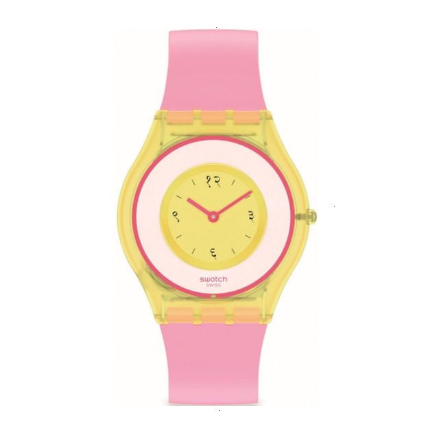 SWATCH INDIA ROSE 01 CUARZO 34MM BIOPLASTICO E/AMARILLA SILICONA